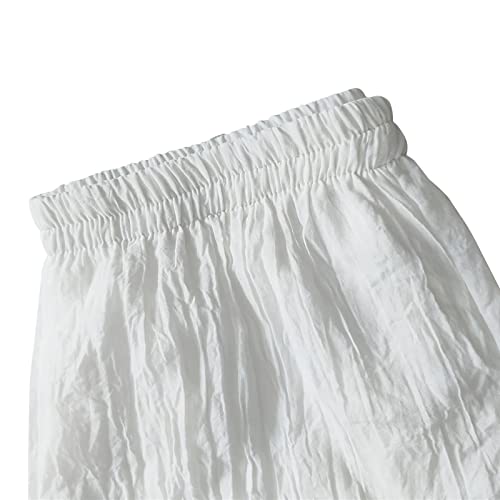 HOT ! YOLAI Double Layer Wide Leg Pants Loose Elastic Waist Trouser Solid Color Vintage Casual Trouser for Women (White, One Size)