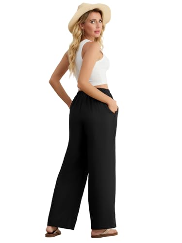 Feiersi Women's Casual Pants Drawstring Elastic Waist Pants Flowy Wide Leg Beach Trousers with Pockets 6