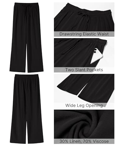 GRAPENT Linen Pants for Women Wide Leg High Waisted Baggy Drawstring Elastic Waist Palazzo Trousers Pants with Pockets 1