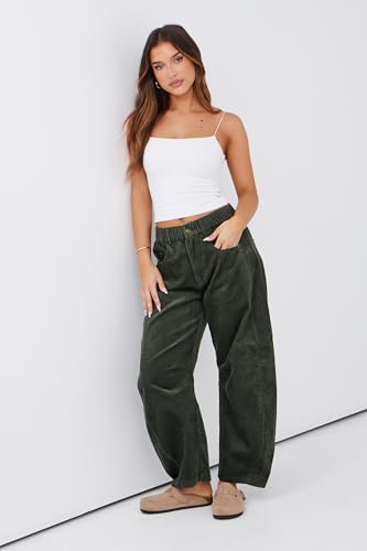 Lviefent Womens Mid Rise Cord Barrel Jeans Casual Baggy Wide Leg Corduroy Cropped Ankle Pants with Pockets 6