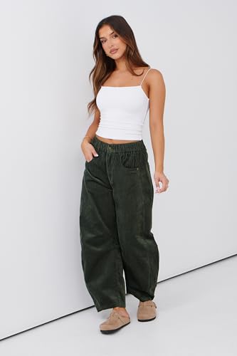 More information about Lviefent Womens Mid Rise Cord Barrel Jeans Casual Baggy Wide Leg Corduroy Cropped Ankle Pants with Pockets