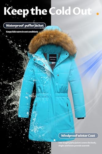 CREATMO US Girl's Long Length Winter Coat Parka Water Resistant Puffer Jacket With Fleece Lining 7
