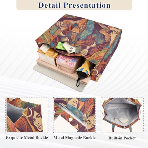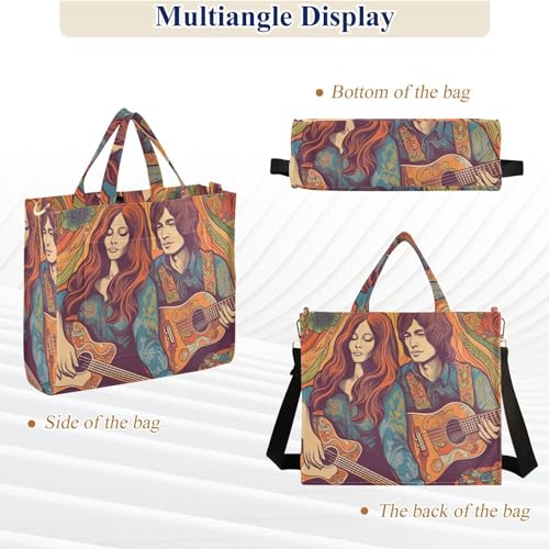 Shoulder Handbags for Women Hippie Lovers Print, Corduroy Tote Bag Large Capacity Small Size 7