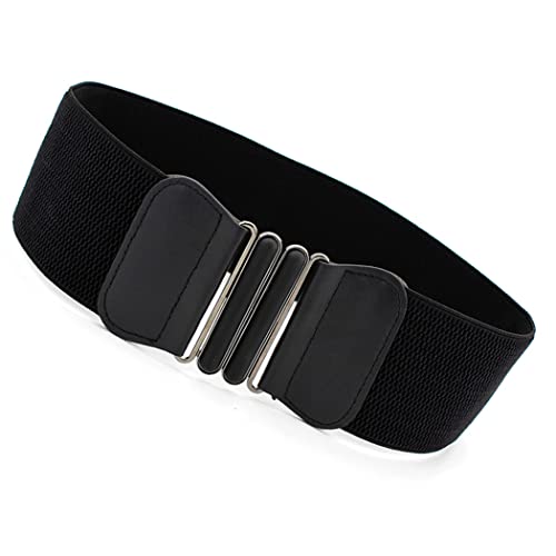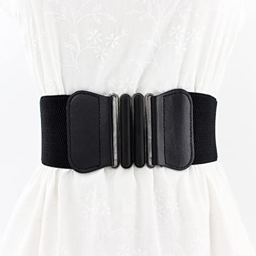 Retro Wide Cinch Belt Womens Corset Waist Band Vintage Bandage Elasticity Girdle Wrap Gothic Elastic Waist Belt with Flat Buckle for Costume – Black 1