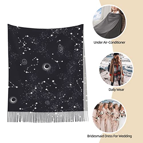Bagea-Ka Moon Space Planet Stars Galaxy Universe Pattern Scarf Long Shawl Wraps Pashmina for Women Girls with Tassels Soft Warm Cozy 5
