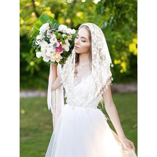 More information about Triangle Lace Scarf for Women Mantilla Veil Tulle Lace Headscarf Lightweight Fashion