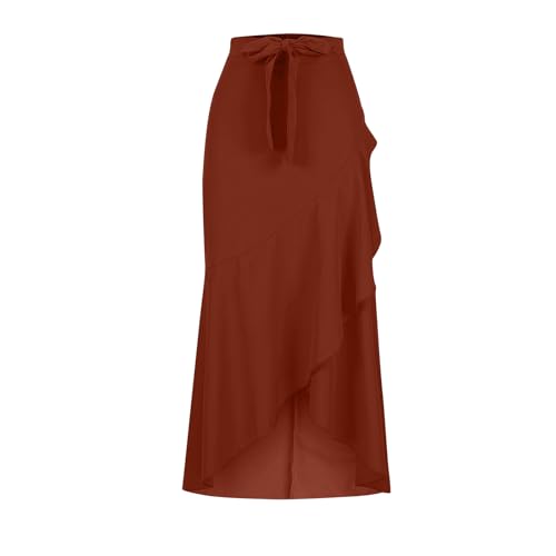 HOT ! JOAU Women's Tie Waist Wrap Maxi Skirts Elegant Adjustable High Waist Irregular Ruffle Hem Flowy A-Line Long Skirt