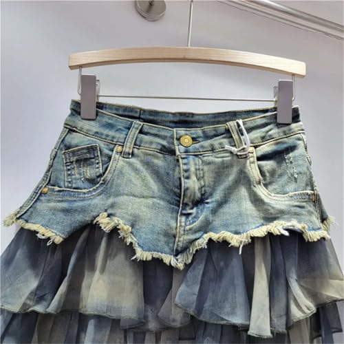 Women High Waist Colorblock Denim Skirt American Loose A-Line Short Skirt Street Summer Style 7