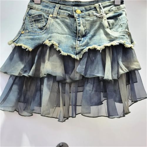 HOT ! Women High Waist Colorblock Denim Skirt American Loose A-Line Short Skirt Street Summer Style
