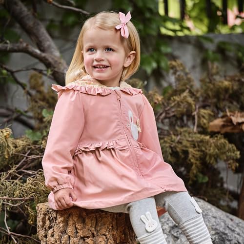 • 【Adorable Girls Outerwear Jackets】Featuring charming rabbit-ear hood detailing and butterfly-embellished pockets, the toddler girls’ jacket combines playful style with practical elements. The ribbed cuffs, zippered closure, and roomy pockets create both warmth and convenience for active little girls.