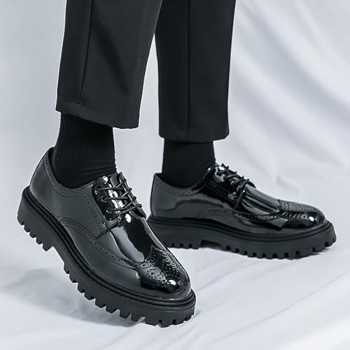 Men's Patent Leather Wingtip Platform Derby Shoes Fashion Round Toe Lace Up Lug Sole Brogue Dress Shoes for Causal Business Work Wedding 6