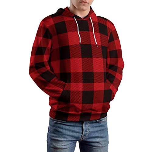Mens Hoodies Red And Black Buffalo Plaid Hooded Sweatshirt with Pockets Winter Fall Sweaters for Women Men 7