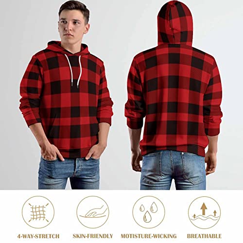 Mens Hoodies Red And Black Buffalo Plaid Hooded Sweatshirt with Pockets Winter Fall Sweaters for Women Men 3