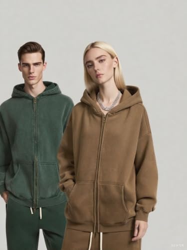 Mens Oversized Zip Up Hoodie Women Acid Wash Hoodie Heavyweight Fleece Full Zipper Vintage Sweatshirt 5
