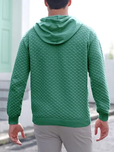 Mens Hooded Sweatshirt Casual Long Sleeve Drawstring Solid Knitted Hoodie Pullover Sweater 5