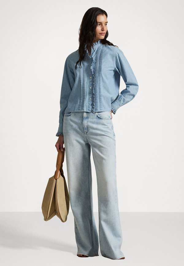 RUFFLE TRIM CHAMBRAY TOP - Button-down blouse - chambray 1