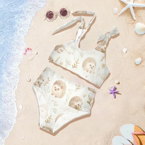 Cute Watercolor Hedgehogs Girls 2 Piece Kids Bikini Set Quick-Dry Swimsuits Swimming Suits Adjustable Strap 5