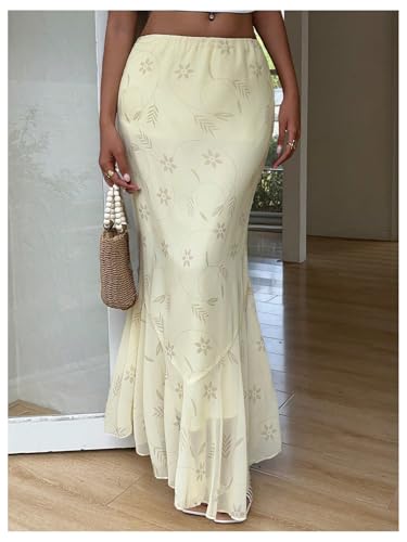 MakeMeChic Women's Summer Mesh Floral Skirt Low Waist Ruffle Fishtail Maxi Skirts 1