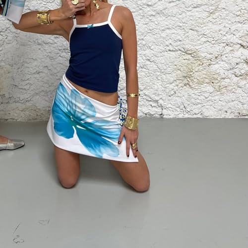 ​Womens Floral Printed Mini Skirt Side Split Tie-Up Low Rise Summer Vacation Outfits Y2K Beach Pencil Bodycon Skirts 7