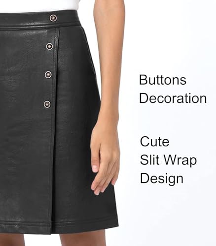 raita Faux Leather Skirts for Women High Waist Mini Skirt for Work Casual Pleather A Line Knee Length Wrap Skirt 6