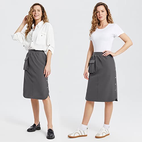 baleaf Women's Long Casual Skirt Pocket with Slit 26.5" Midi Calf Length Elastic Waist Stretch for Travel 6