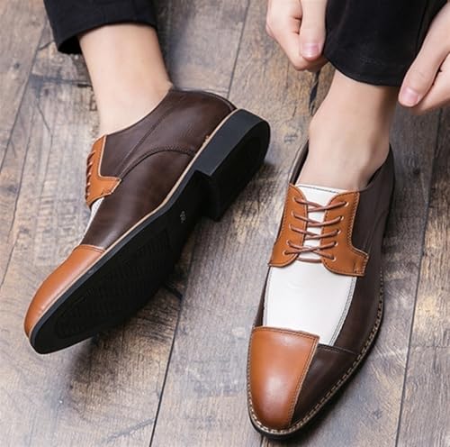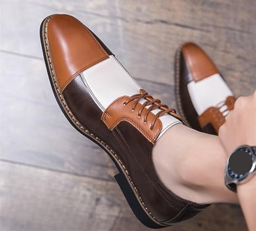 Mens Two Tone Lace Up Oxfords Shoes Fashion Patchwork Multicolor Carved Leather Low Heels Square Toe Dress Shoes Vintage Wing Tips Hand Stitched Colorblock Business Formal Derby Shoes for Men 6