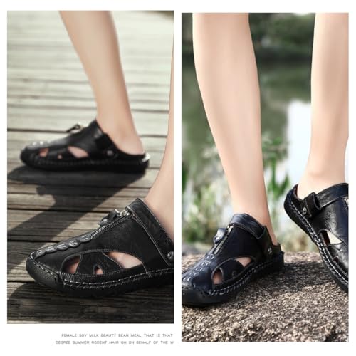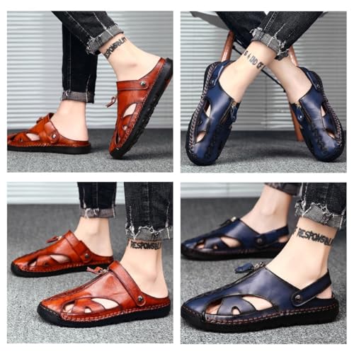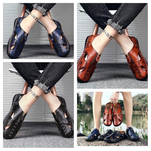 HOT ! Men's Genuine Leather Dress Sandals-Comfortable Anti-Slip Rubber Sole,Breathable Handmade Formal Sandals for Outdoor