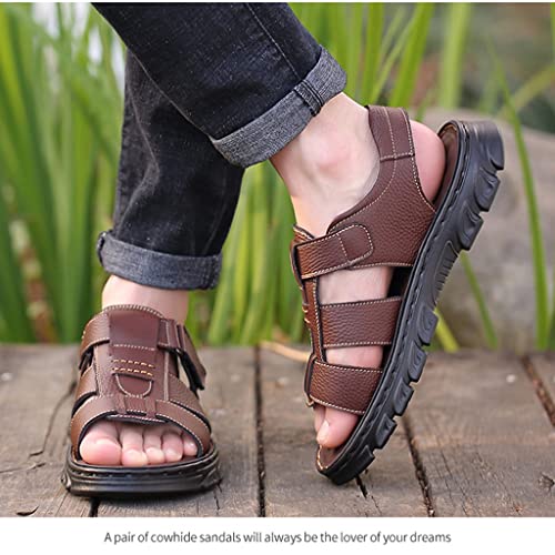 Men Genuine Leather Sandals Outside Cow Leather Slippers Soft-Soled Male Casual Sandals Non-Slip(43) 5
