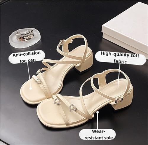 Women's Heeled Sandal Strappy Block Heels Sandals Square Open Toe Strappy High Comfortable For Dressy Formal Daily Work 6