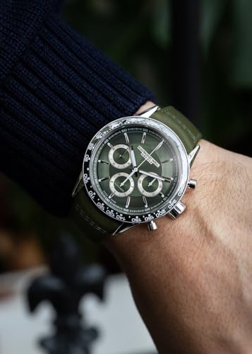• CHRONOGRAPH EXCELLENCE: Featuring a tri-compax chronograph, this watch is equipped with highly legible white hands on the 30-minute and 12-hour registers, surrounded by elegant silver-toned circlets.