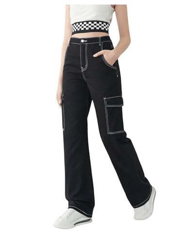 More information about WDIRARA Girl's High Waist Zip Up Denim Pants Straight Leg Cargo Jeans with Pockets