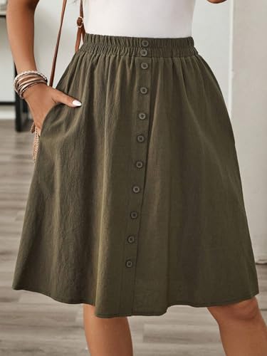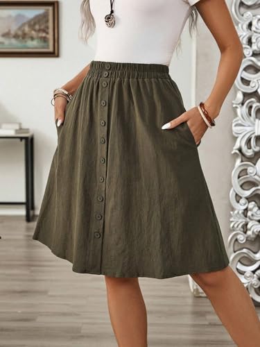 • Army Green / 100.0% Cotton / Regular Fit / Button, Pocket, Button Front / Flared / Non-Stretch / Plain / Hand wash,do not dry clean / Unlined / Knee Length / Polyester / Natural(Mid Waist)