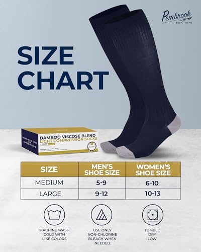 HOT ! Pembrook Bamboo Viscose Light Compression Socks - 3 Pairs | 8-15 mmhg Compression Socks | Knee High Comfort Support Socks