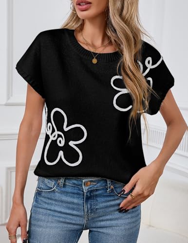• Design Features: Decorated with charming embroidered flowers, this cap-sleeve sweater vest adds a playful and feminine touch. The ribbed crewneck and neat edges enhance the stylish appeal, making it a great layering piece.