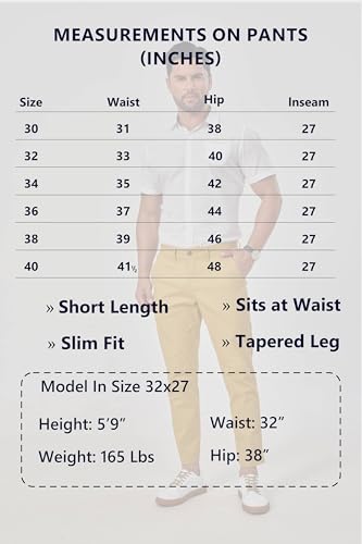 Khaki Pants for Short Men 27" Straight Slim Fit Men’s Dress Chinos Pants Stretch Smart Casual Trousers 6