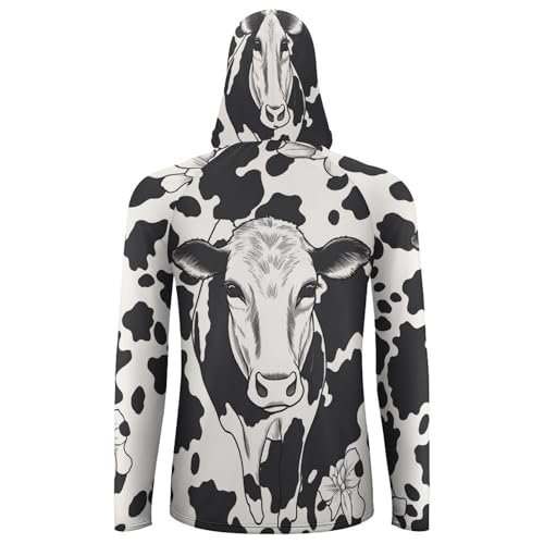 Men's Sun Shirts UPF 50+ Rash Guard Long Sleeve Sun Protection Hoodie Black and White Cow Lightweight Shirt 3XL 6