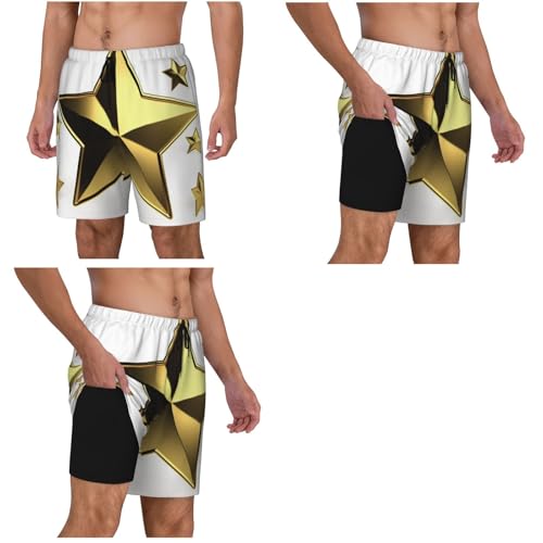 Men's Swim Trunks Quick Dry Board Shorts Drawstring Beach Short Gold Star Bathing Suit for Men 3