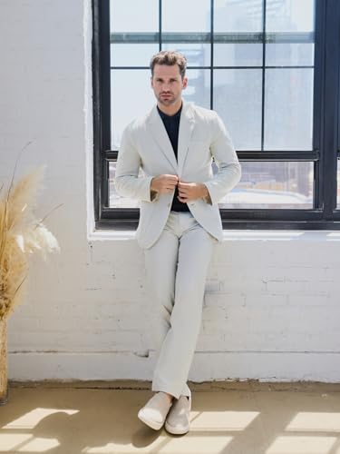 Blazer for Men Cotton Blend Sport Coat Knit Casual Jacket Half Lining Two Buttons Notch Lapel Double Vent 6
