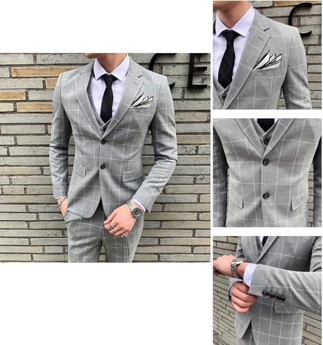 More information about Men's Checked Suit Three Pieces Plaid Notch Lapel Single Breasted Button Jacket Vest Pants for Formal
