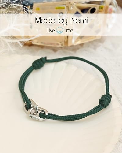 More information about Made by Nami Nautical Bracelets for Men Adjustable and Waterproof Rope Bracelet for Men with Stainless Steel Charm Gift for Him (Emerald Green Silver)