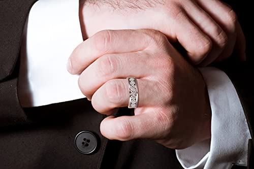 Men Moissanite Ring Moissanite Eternity Wedding Band Ring, 1.4cttw D Color VVS1 Lab Diamond Channel Set, S925 Silver with 18K White Gold Plated Moissanite Wedding Engagement Anniversary 6