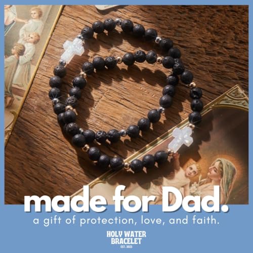 Holy Water Inspirational Stretch Bracelet For Men Real Lava Rock Beads 2 Colors 1