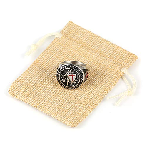 HZMAN Knights Templar Put On The Whole Armor of God Ephesians 6:13-17 Red Cross Design Men's Stainless Steel Ring 6