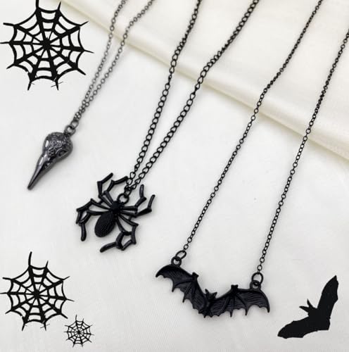 3PCS Halloween Punk Necklace for Men/Women Vintage Gothic Halloween Necklace Bat/Crow Skull/Spider Pendant Gothic Halloween Jewelry Gift 5