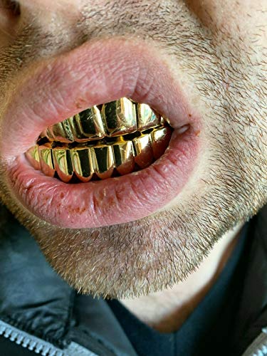More information about Solid 925 Sterling Silver Real Grillz - 14k Gold Plated - Custom Top & Bottom Grills For Teeth - Real Solid Silver NOT BRASS