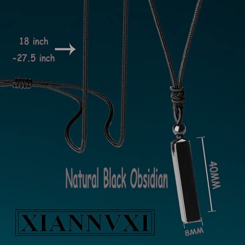 More information about XIANNVXI Men Bar Necklace Black Healing Crystal Necklace Adjustable Rope Natural Gemstone Rectangle Pendant Necklaces Simple Cool Necklace Jewelry Christmas Gifts