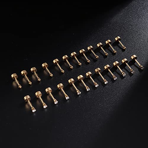 • CARTILAGE STUD EARRINGS: One order you can get 12 pairs cartilage stud earrings in 2 design: clear cubic zirconia cartilage studs and round ball cartilage studs. 3 color for you to choose: silver-tone,14K Gold Plated -tone and 14K rose gold plated -tone. Economical and affordable cartilage stud earring set for you.