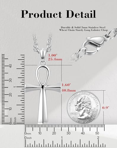 • Bright Design:Edulex 18k gold plated 316L solid stainless steel ankh cross necklace comes on 24 inch rolo chain size available, high polished key of life pendant