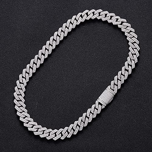 14mm Iced Out Cuban Link Chain 18K White Gold Plated Diamond Chain Necklace Bling 5A+ Cubic Zirconia Thick Cuban Link Choker Chain Luxury Hip Hop Jewelry for Men and Women 5
