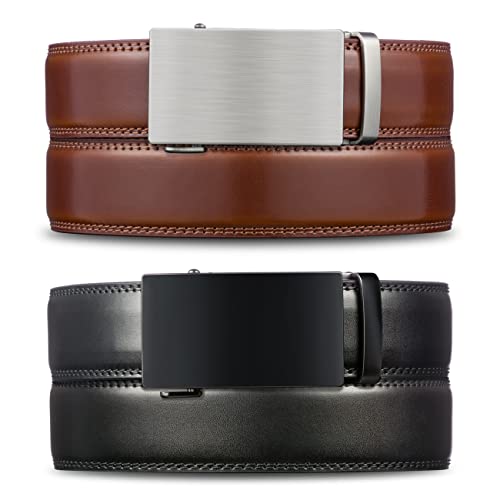 HOT ! Mio Marino Mens Belt - Simple Adjustable Linxx Buckle with Genuine Leather - Modern Dress Ratchet Belts for Men - 2 Pack